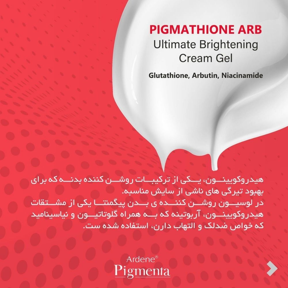 ژل کرم روشن کننده بدن پیگمنتا از برند ایرانی آردن، یک روشنکننده تخصصی برای پوست بدن است که با فرمولاسیونی نوآورانه طراحی شده تا بهتدریج لکها، تیرگیها و ناهمواریهای رنگ پوست را کاهش دهد. این محصول بافتی ژلی-کِرِمی دارد که بهسرعت جذب میشود و بدون ایجاد حس چربی، به روشنتر شدن، یکنواختی و شفافیت پوست کمک میکند. ژل کرم بدن پیگمنتا برای افرادی طراحی شده که به دنبال درمان لکهای تیره روی دستها، بازوها، زانو، کشاله ران، آرنج و سایر نواحی بدن هستند، و در عین حال پوستشان را لطیف و مرطوب نگه دارند. این محصول بدون نیاز به نسخه پزشک، قابل استفاده در خانه و سازگار با انواع پوست، از جمله پوستهای حساس است.