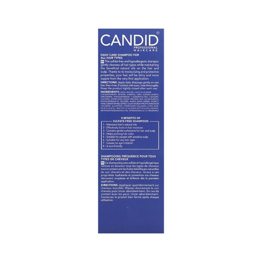 این شامپو ویتامینه و پروتئینه روزانه کاندید برای تمامی انواع مو، خشک، چرب، معمولی و حساس طراحی شده است. شامپو ویتامینه و پروتئینه روزانه کاندید بهویژه برای موهای ضعیف، آسیبدیده یا مستعد ریزش مؤثر است و به دلیل فرمول بدون سولفات، برای کف سر حساس هم مناسب است.