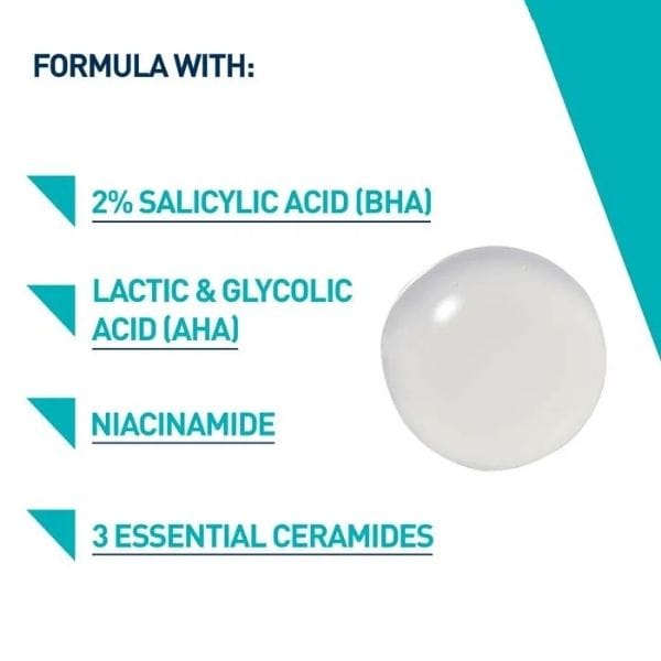 Aqua/Water, Propylene Glycol, Niacinamide, Salicylic Acid, Sodium Hydroxide, Dimethicone, Acrylates/C10-30 Alkyl Acrylate Crosspolymer, Glycolic Acid, Lactic Acid, Sodium Hyaluronate, Cholesterol, Ceramide NP, Ceramide AP, Ceramide EOP, Phytosphingosine, Carbomer, Triethyl Citrate, Sodium Lauroyl Lactylate, Xanthan Gum, Glycerin, Cetearyl Alcohol, Behentrimonium Methosulfate, Dimethiconol, Lecithin, Sodium Chloride, Coco-Glucoside, Phenoxyethanol, Methylparaben, Propylparaben, BHT