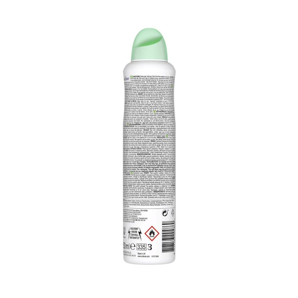 اسپری ضد تعریق داو خیار و چای سبز (Dove Advanced Care Go Fresh Cucumber & Green Tea Antiperspirant Deodorant Spray) محصولی از برند داو است که با فناوری سهگانه مرطوبسازی و فرمولی بدون الکل، علاوه بر محافظت 48 ساعته در برابر عرق و بو، به مراقبت از پوست نازک زیر بغل نیز توجه دارد. این اسپری ضد تعریق با رایحهای تازه از خیار و چای سبز، برای کسانی که به دنبال ترکیبی از عملکرد ضد تعریق قوی و مراقبت ملایم از پوست هستند، طراحی شده است و به کاهش تحریک پوستی ناشی از اصلاح کمک میکند.