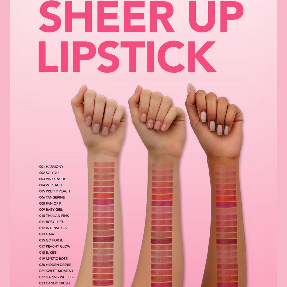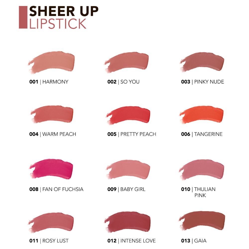 | رنگ | 001 Harmony, 002 So You, 003 Pinky Nude, 004 Warm Peach, 005 Pretty Peach, 006 Tangerine, 008 Fan Of Fuchsia, 009 Baby Girl, 010 Thulian Pink, 013 Gaia |