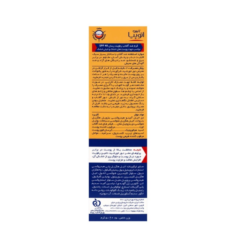 کرم ضد آفتاب هیدرا بوست آردن اتوپیا با SPF 40 محافظت گستردهای در برابر اشعه UVA و UVB فراهم میکند و همزمان پوست خشک و خیلی خشک را بهطور عمیق آبرسانی میکند. این ضد آفتاب پوست خشک را با ترکیب اکتوئین، پانتنول و نیاسینامید تقویت کرده و سد دفاعی پوست را بازسازی میکند. فرمول سبک و بدون رنگ آن به سرعت جذب شده، هیچ اثر سفیدی یا چربی بر روی پوست باقی نمیگذارد و برای استفاده روزانه صورت و بدن مناسب است.