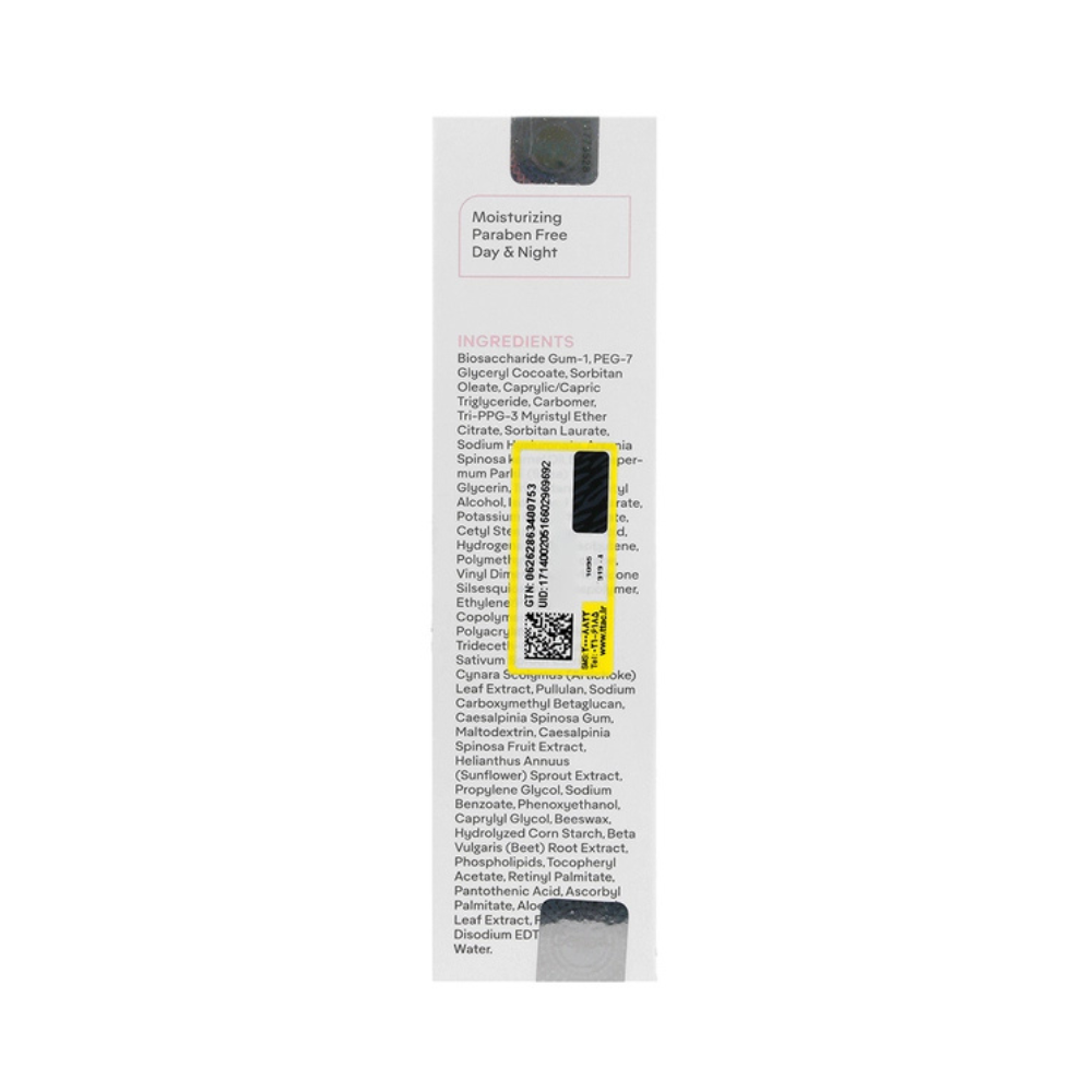 BIOSACCHARIDE GUM-1, PEG-7 GLYCERYL COCOATE, SORBITAN OLEATE, CAPRYLIC/CAPRIC TRIGLYCERIDE, CARBOMER, TRI-PPG-3 MYRISTYL ETHER CITRATE, SORBITAN LAURATE, SODIUM HYALURONATE, ARGANIA SPINOSA KERNEL OIL, BUTYROSPERMUM PARKII (SHEA) BUTTER, GLYCERIN, CETYL ALCOHOL, ISOSTEARYL ISOSTEARATE, POTASSIUM CETYL PHOSPHATE, CETYL STEARATE, STEARIC ACID, HYDROGENATED POLYISOBUTENE, POLYMETHYLSILSESQUIOXANE, VINYL DIMETHICONE/METHICONE SILOXANE CROSSPOLYMER, ETHYLENE/PROPYLENE COPOLYMER, LEPIDIUM SATIVUM SPROUT EXTRACT, CYNARA SCOLYMUS (ARTICHOKE) LEAF EXTRACT, PULLULAN, SODIUM CARBOXYMETHYL BETA-GLUCAN, CAESALPINIA SPINOSA GUM, MALTODEXTRIN, CAESALPINIA SPINOSA FRUIT EXTRACT, HELIANTHUS ANNUUS (SUNFLOWER) EXTRACT, PROPYLENE GLYCOL, PHENOXYETHANOL, SODIUM BENZOATE, SODIUM POLYACRYLATE, PARAFFINUM LIQUIDUM (MINERAL OIL), TRIDECETH-8, CAPRYLYL GLYCOL, BISABOLOL, HYDROLYZED CORN STARCH EXTRACT, BETA VULGARIS (BEET) ROOT EXTRACT, PHOSPHOLIPIDS, TOCOPHERYL ACETATE, RETINYL PALMITATE, PANTOTHENIC ACID, ASCORBYL PALMITATE, CHOLECALCIFEROL, ALOE BARBADENSIS LEAF EXTRACT, FRAGRANCE (PARFUM), DISODIUM EDTA, DEIONIZED WATER (AQUA)