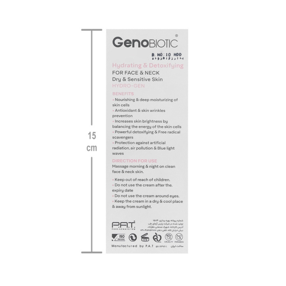 کرم رطوبت رسان پوست خشک و حساس ژنوبایوتیک، مدل دتوکسیفای کننده