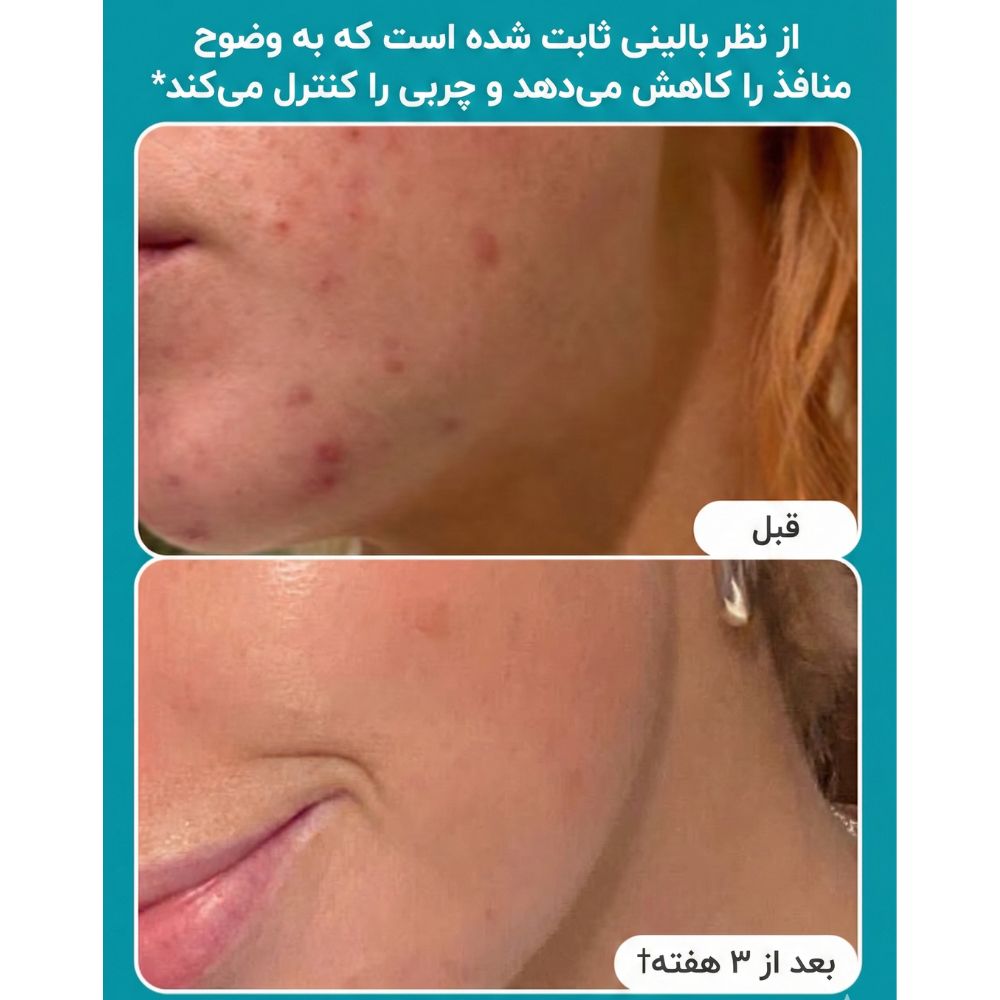 | وضعیت پوستی / مویی | آکنه (جوش), بافت ناصاف پوست, پوست چرب, پوست مختلط, سرسفید (کومدون بسته), سرسیاه (کومدون باز) |