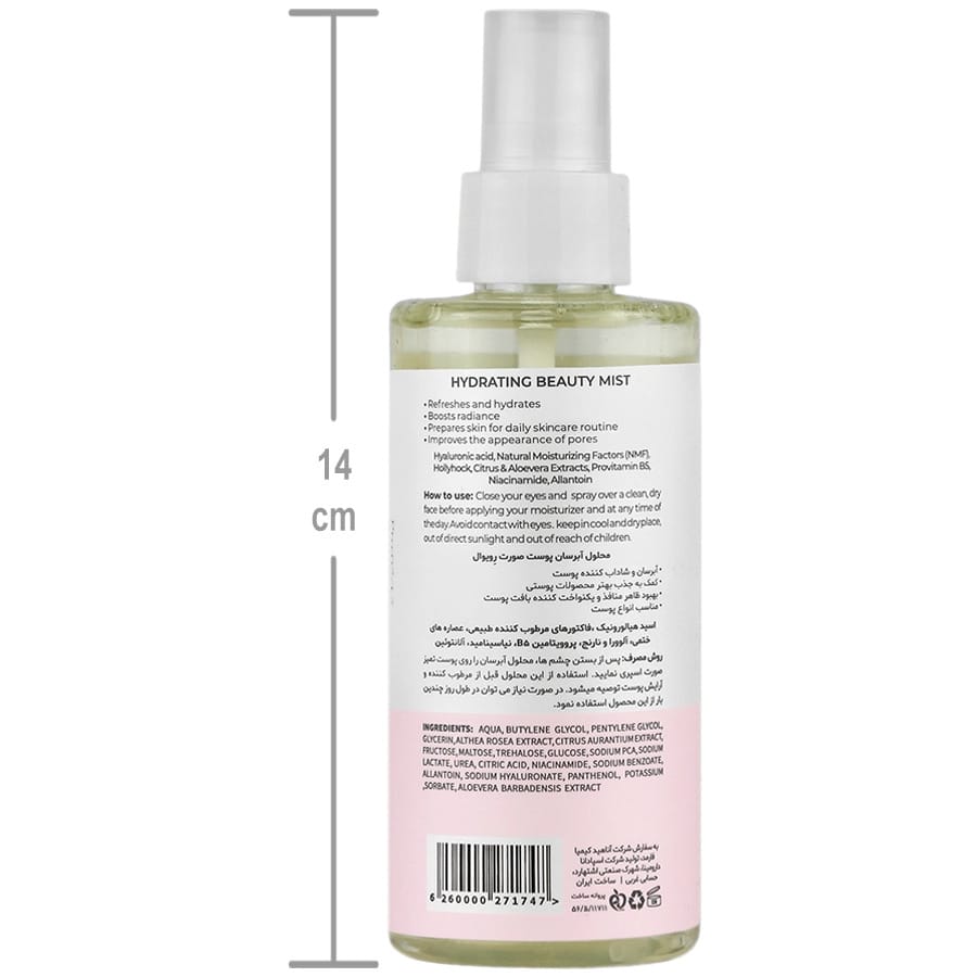 زمان مناسب برای استفاده: بهترین زمان برای استفاده از این اسپری، بلافاصله بعد از شستوشوی صورت و زمانی است که پوست هنوز مرطوب است. این کار به جذب بهتر رطوبت کمک میکند. همچنین، میتوان در طول روز برای تمدید رطوبت و طراوت پوست از آن استفاده کرد.