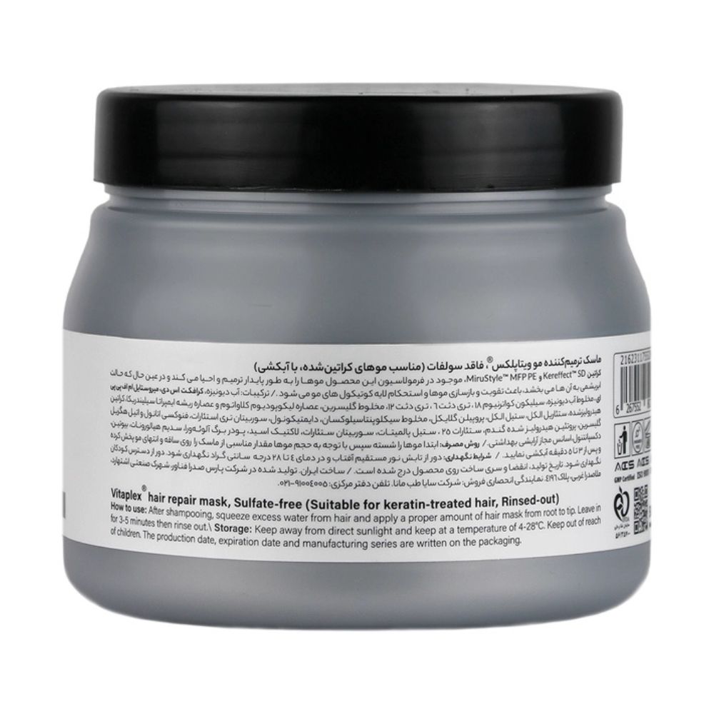 ماسک مو کراتین ویتاپلکس محصولی تخصصی از برند Vitaplex است که بهویژه برای موهای کراتینه شده طراحی شده است. این ماسک با فرمولی غنی از کراتین هیدرولیز شده، پروتئین گندم هیدرولیز شده و بیوتین، به تقویت ساختار مو، حفظ نتایج کراتینه و جلوگیری از شکنندگی کمک میکند. بافت کرمی و سبک آن با جذب سریع، موها را بدون ایجاد احساس سنگینی تغذیه میکند و برای استفاده روزانه یا بهعنوان مراقبت هفتگی مناسب است.